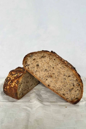 Elke week bak ik met veel zorg en geduld echt ambachtelijk zuurdesembrood. Elk brood is met de hand gevormd en gebakken op een steenovenvloer, waardoor ze stuk voor stuk uniek zijn in uiterlijk en rijk van smaak. De desemcultuur die ik ontwikkeld heb heeft een mild karakter. Met een knapperige korst aan de buitenkant en een luchtige kruim van binnen, zijn mijn broden de perfecte aanvulling op elke maaltijd.